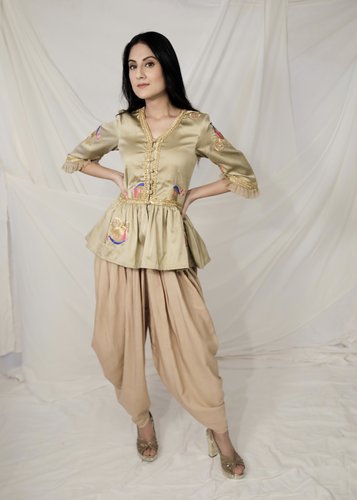 Golden embroidered peplum jacket with dhoti pants