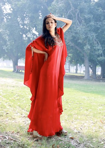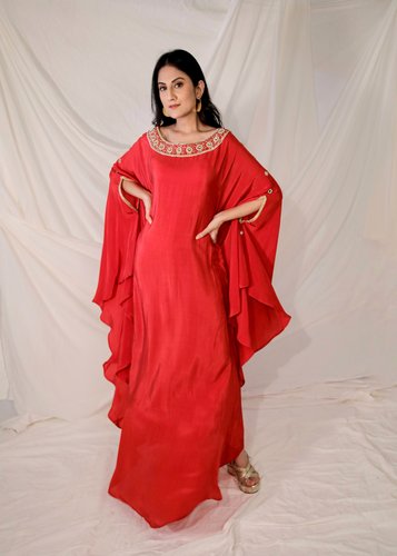 Hand embroidered kaftan dress in red