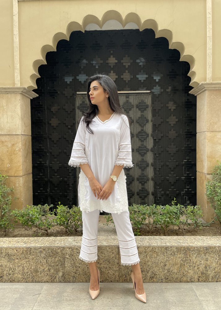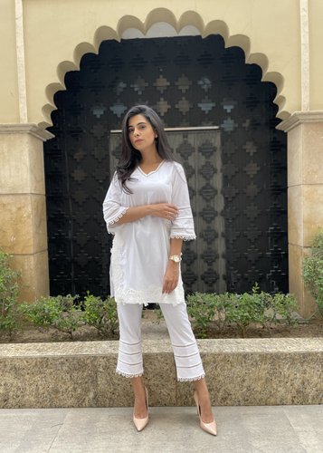Classic white lace kurta set